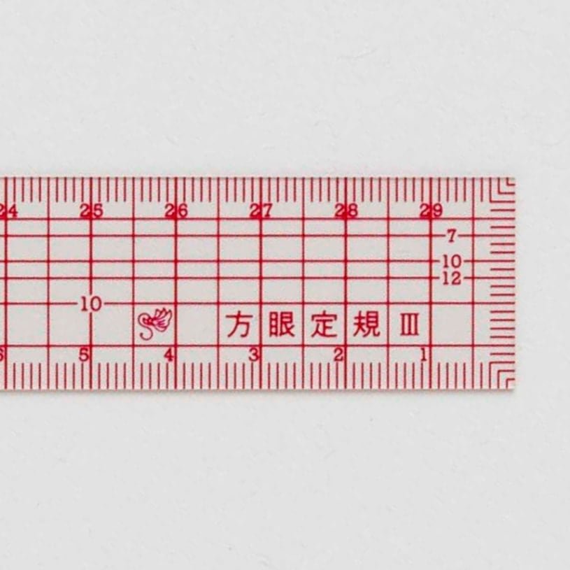 The scale is printed on a 0.2 mm PVC film and then laminated under heat and pressure with multiple layers of the same film. Because the markings are sealed inside the layers, they never come into direct contact with paper or fabric and won’t wear off. By combining films of different thicknesses, the ruler resists warping, and a matte film layer is added during the lamination process to eliminate air bubbles, resulting in a clear and smooth finish.